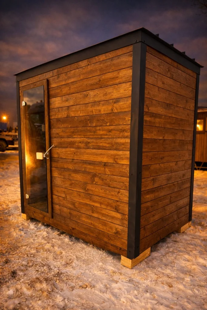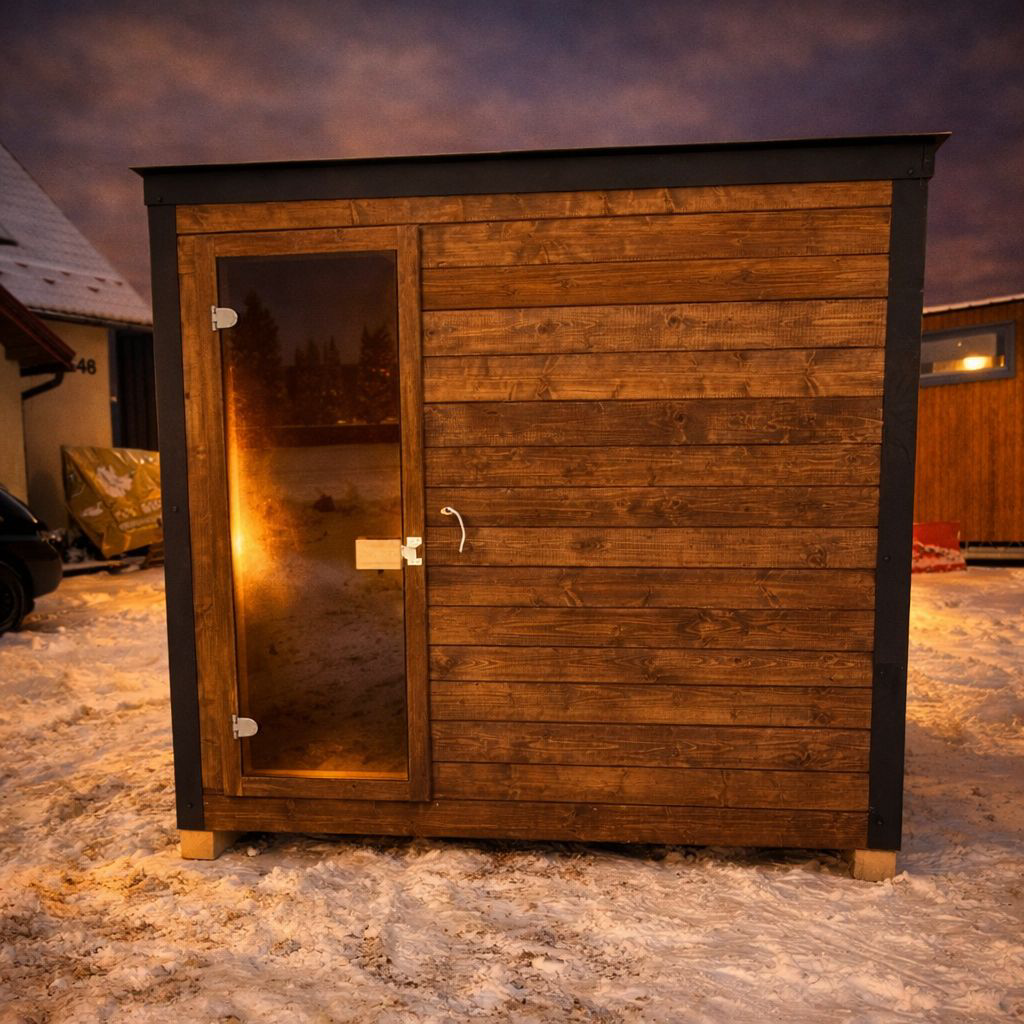 Gartensauna aus Fichtenholz – Modell „Mini“ Die kompakte, robuste und stilvolle Gartensauna „Mini“ ist die ideale Lösung für alle, die Entspannung in der Natur, hochwertige Verarbeitung und modernes Design schätzen. Dank ihrer kompakten Abmessungen eignet sie sich perfekt auch für kleinere Gärten und bietet gleichzeitig ein vollwertiges Saunaerlebnis.