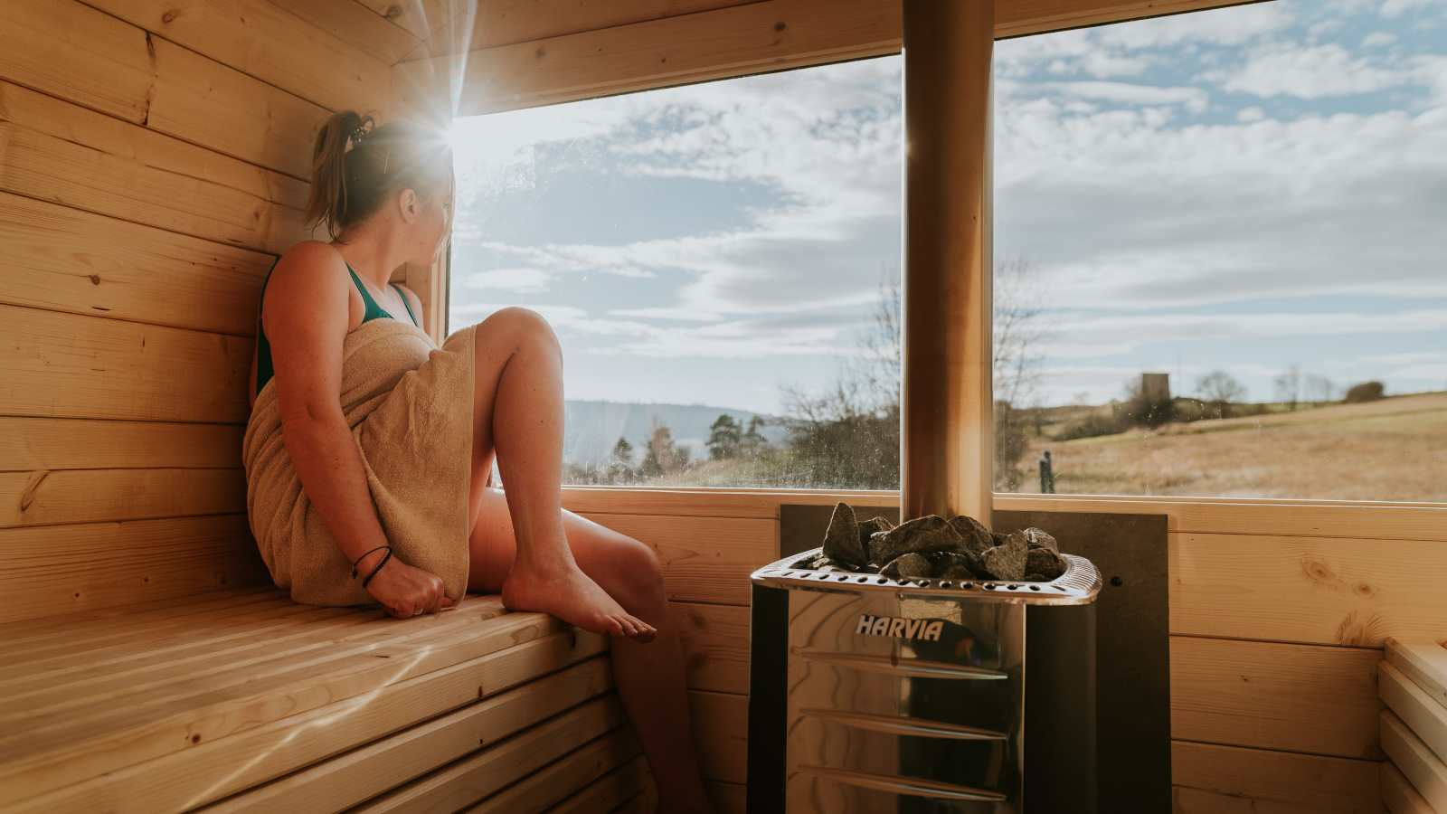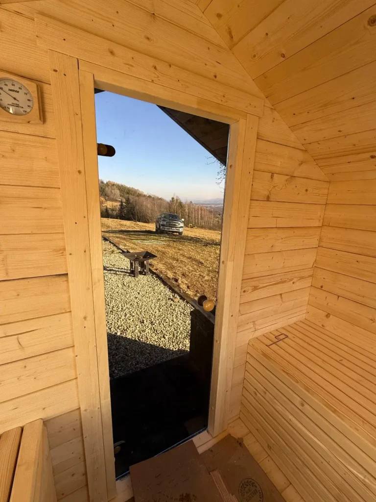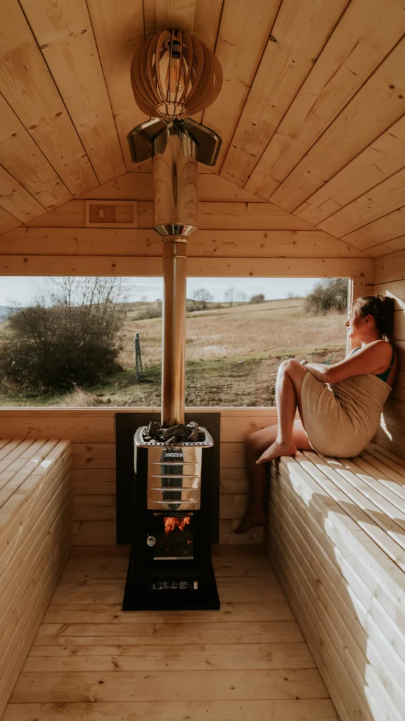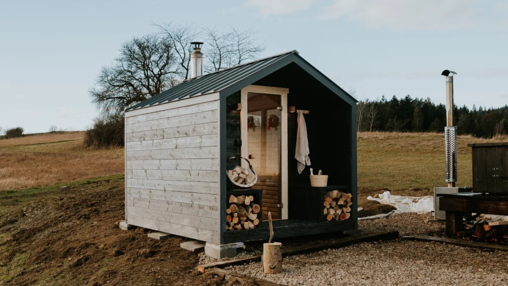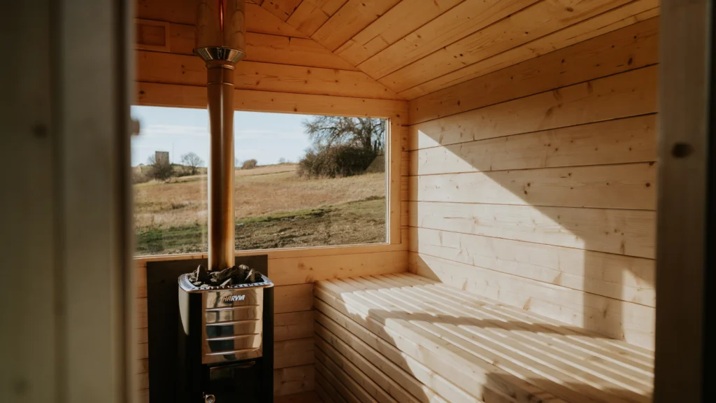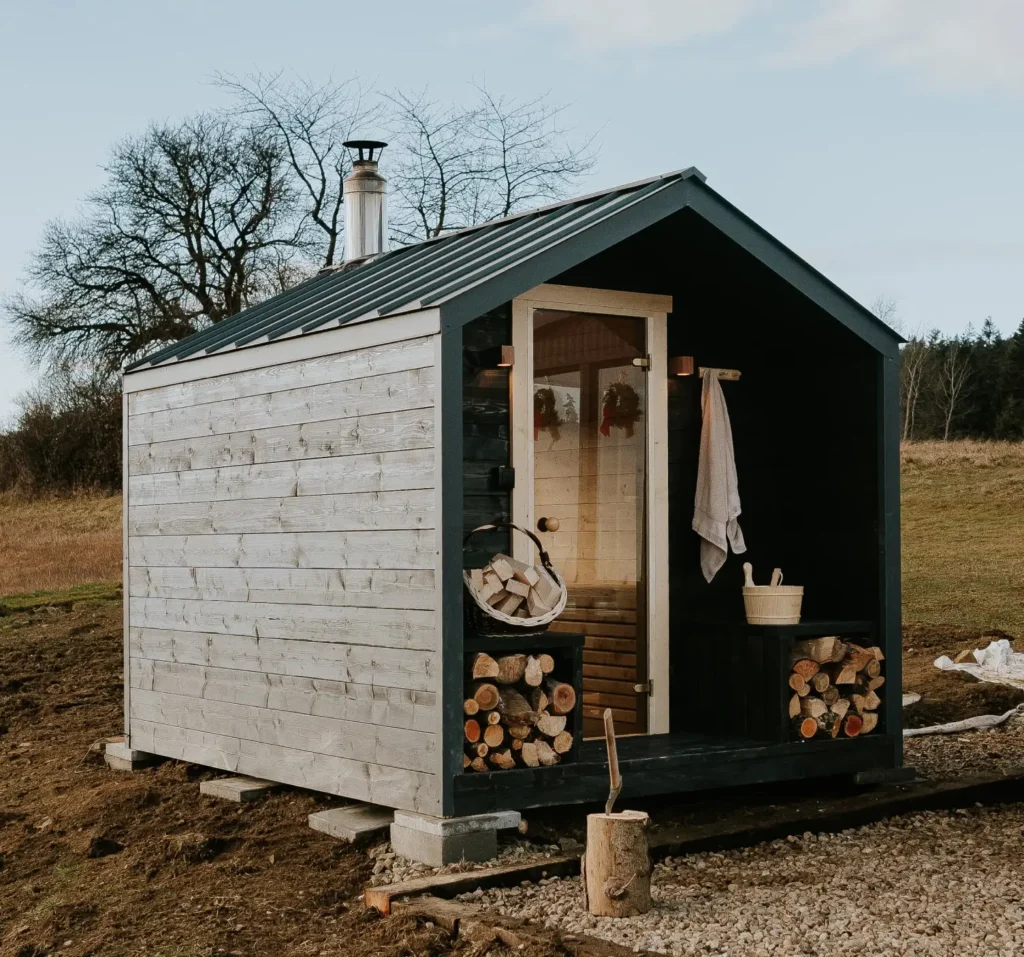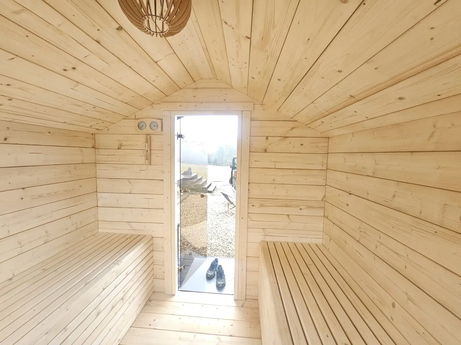 • Wände: 45 mm gefrästes Fichtenholz, außen imprägniert, innen naturbelassen