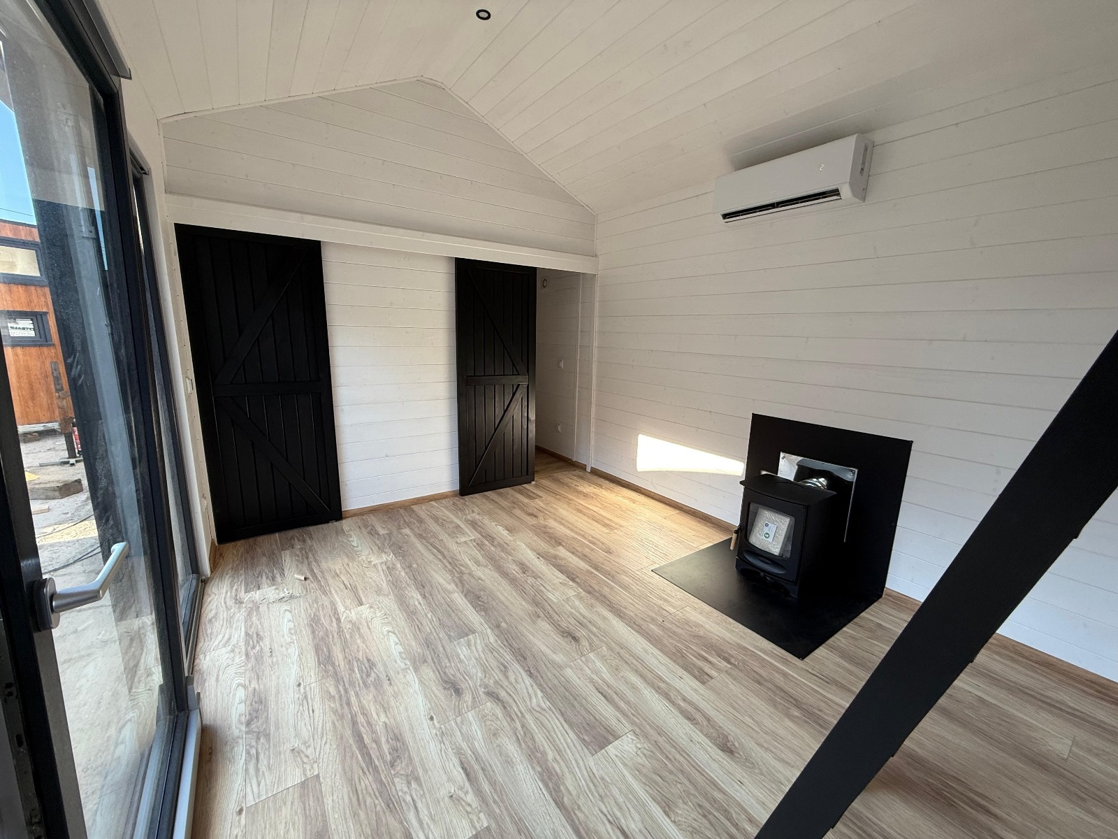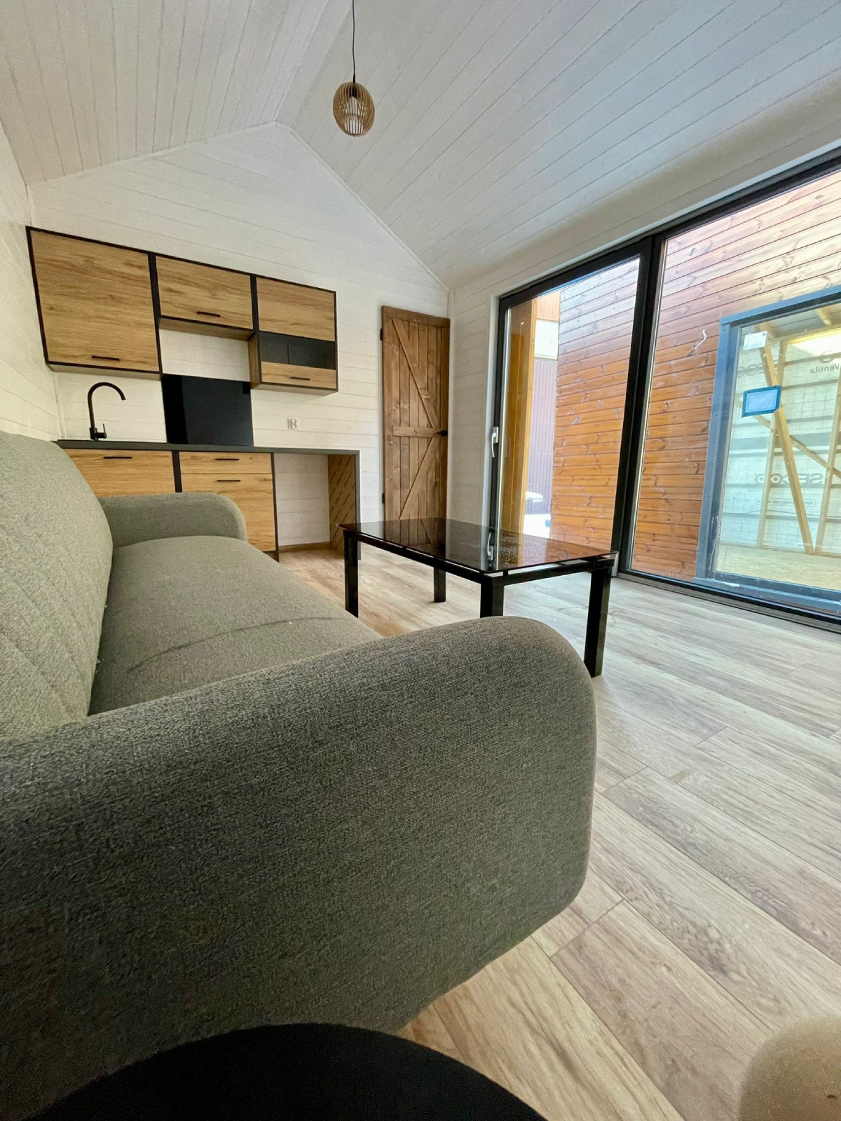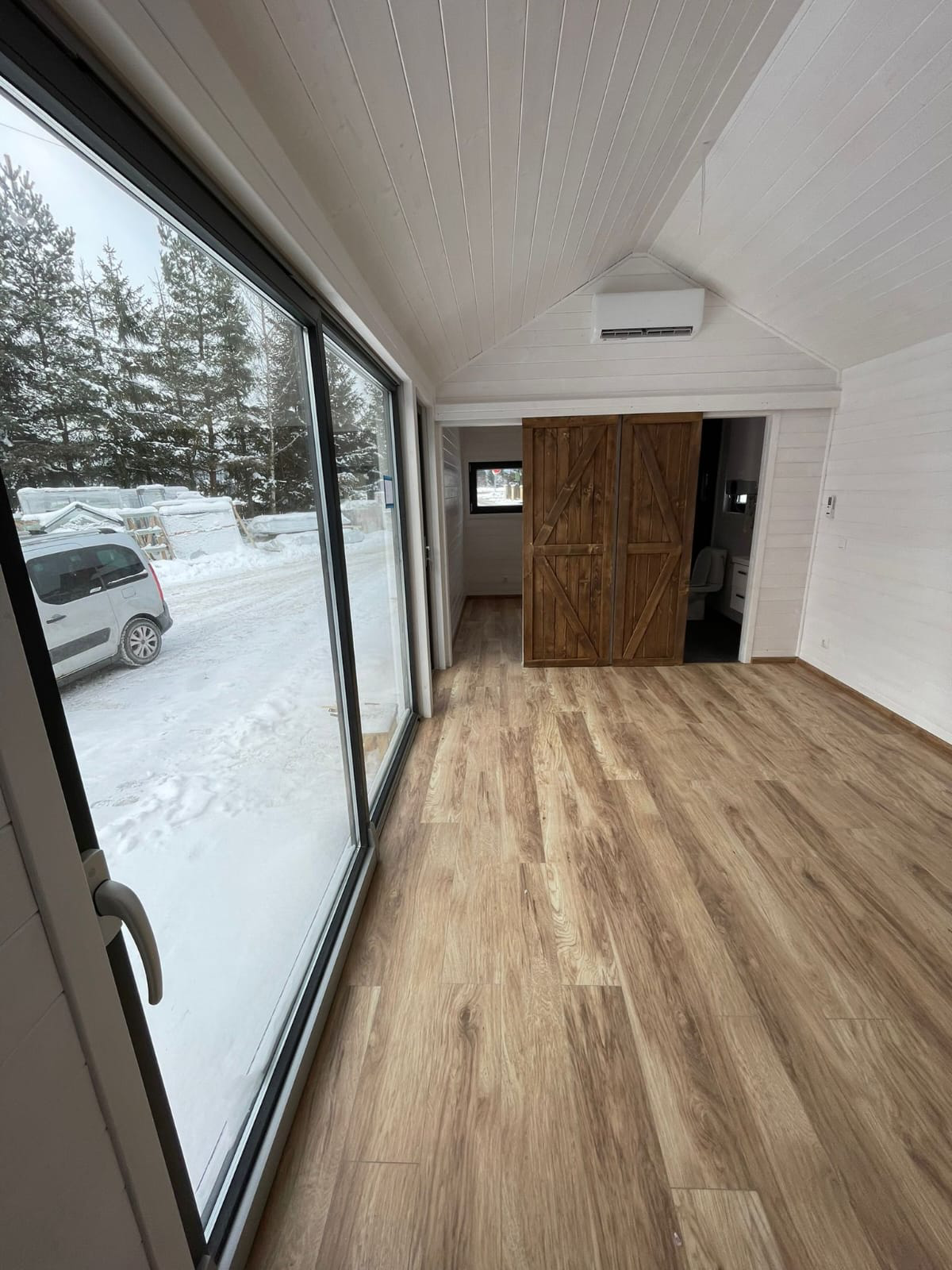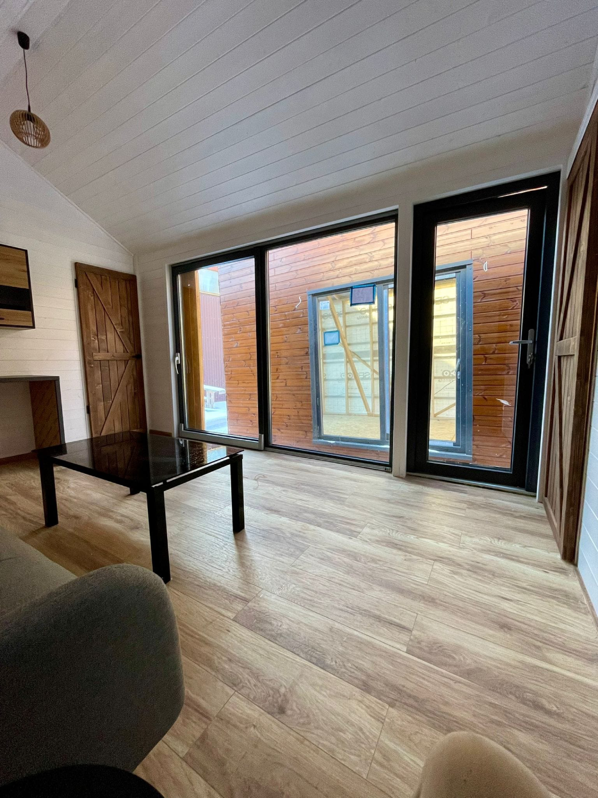 - Innenausstattung aus Naturholz. Viele Verglasungen;