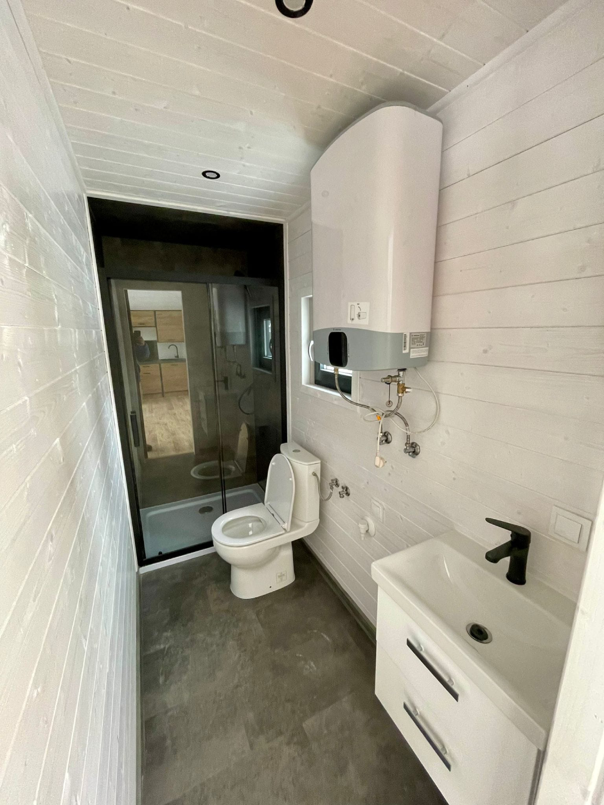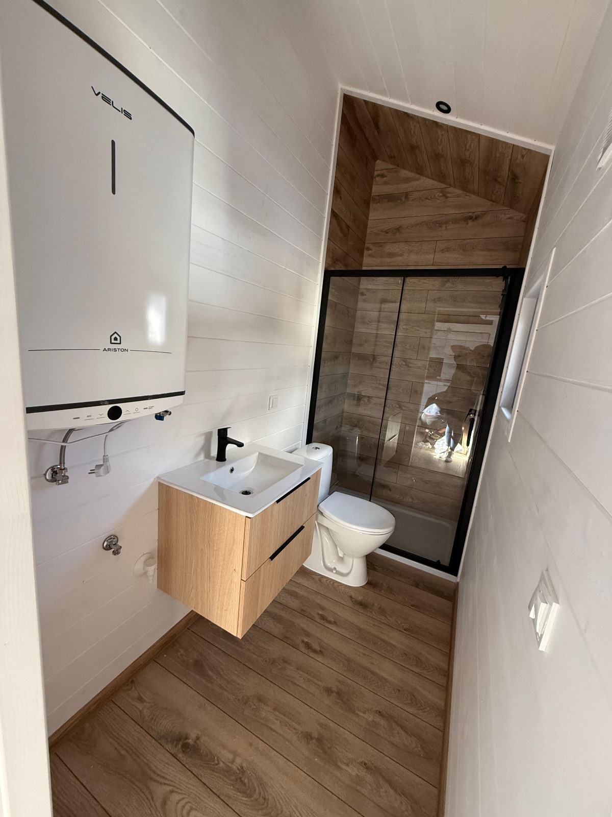 - Badezimmer: Dusche, WC, Waschbecken;