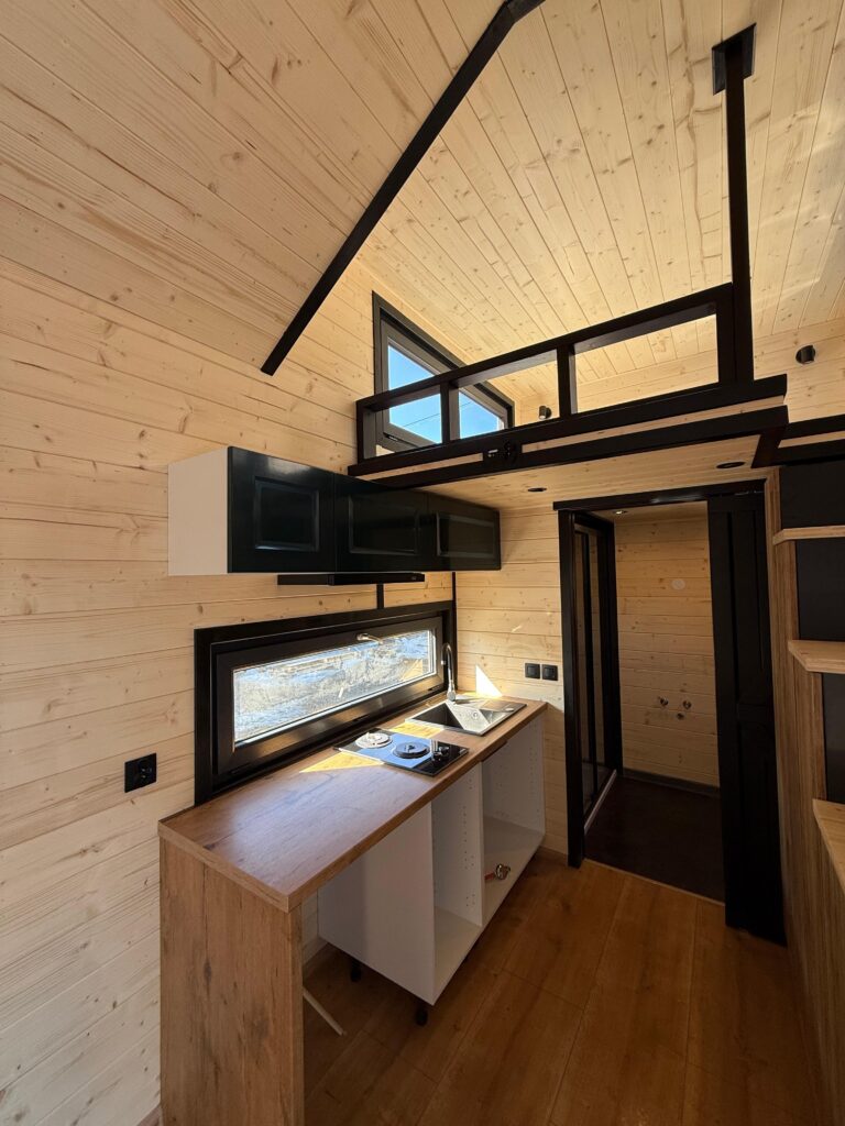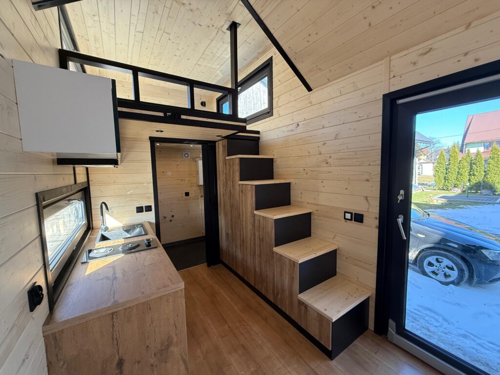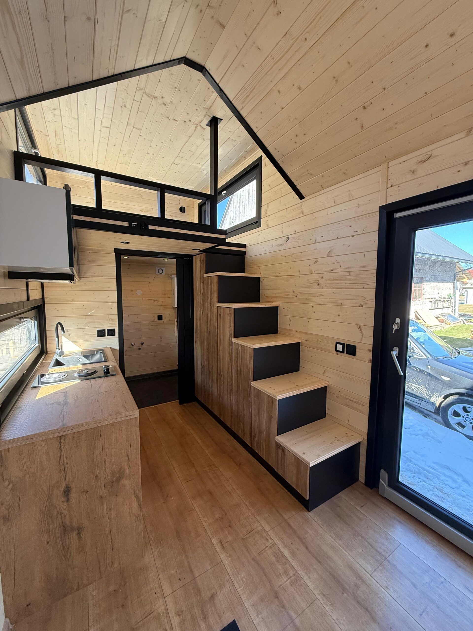 - Innenausstattung aus Naturholz mit schwarzen Einsätzen;