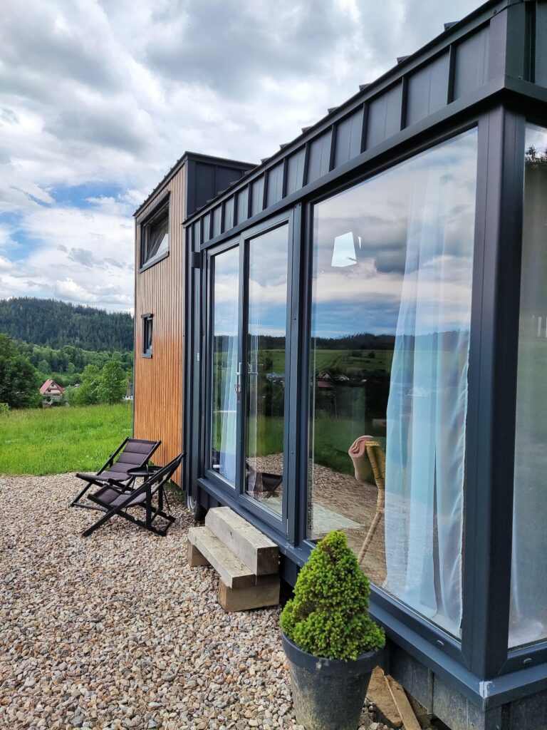 - Fassade – aus Blechpaneelen mit Falz. Pflegeleicht, in verschiedenen Farben erhältlich, ästhetisch und langlebig.