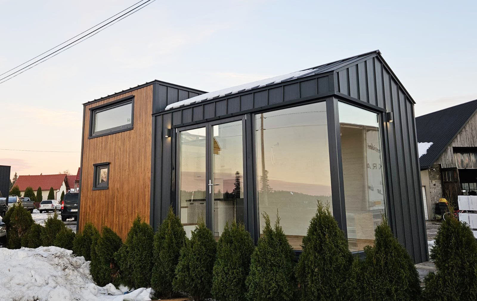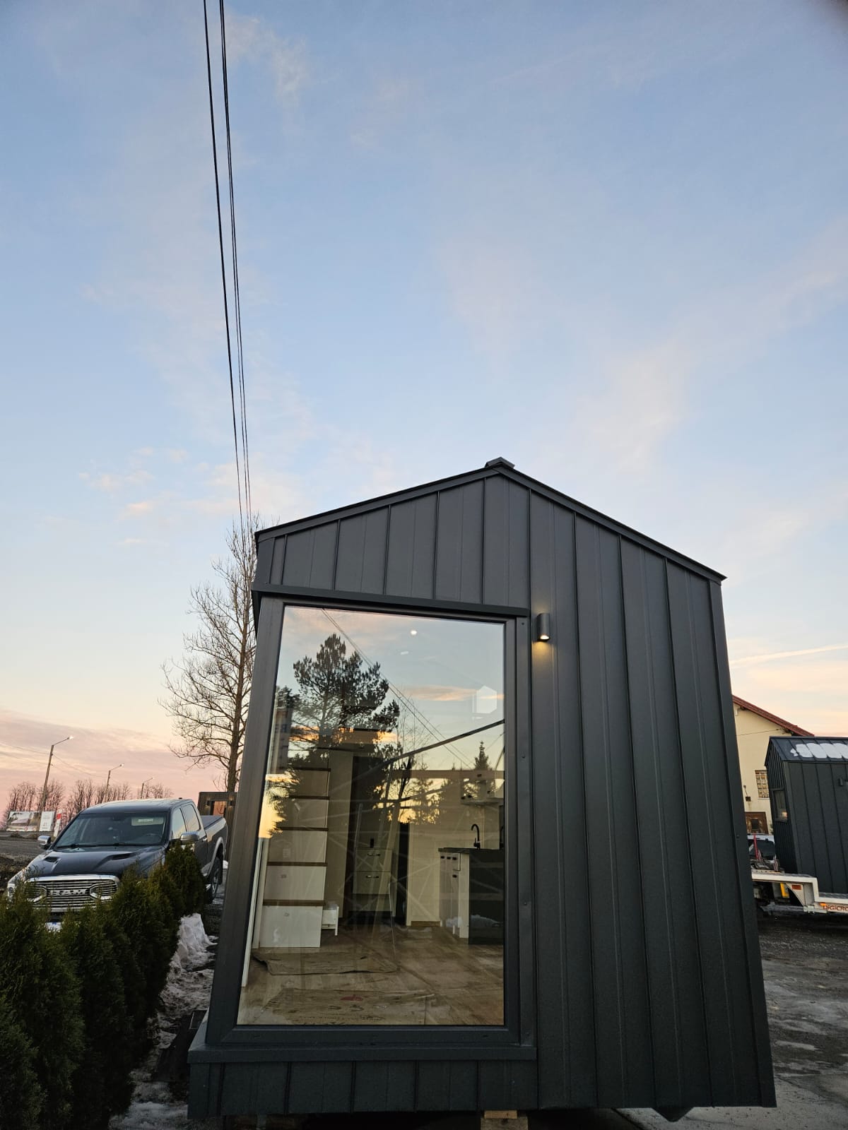 - Fassade – aus Blechpaneelen mit Falz. Pflegeleicht, in verschiedenen Farben erhältlich, ästhetisch und langlebig.