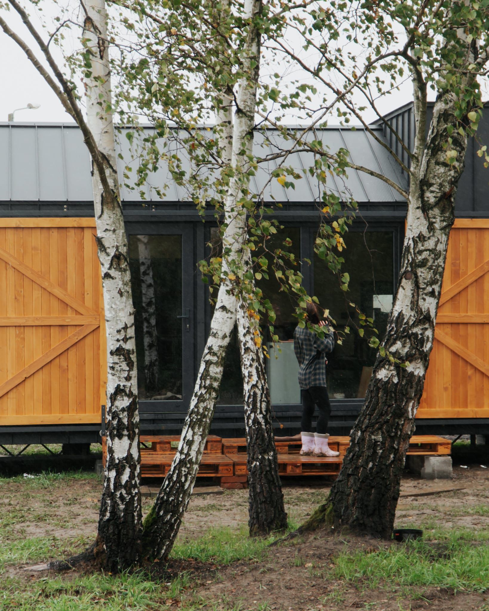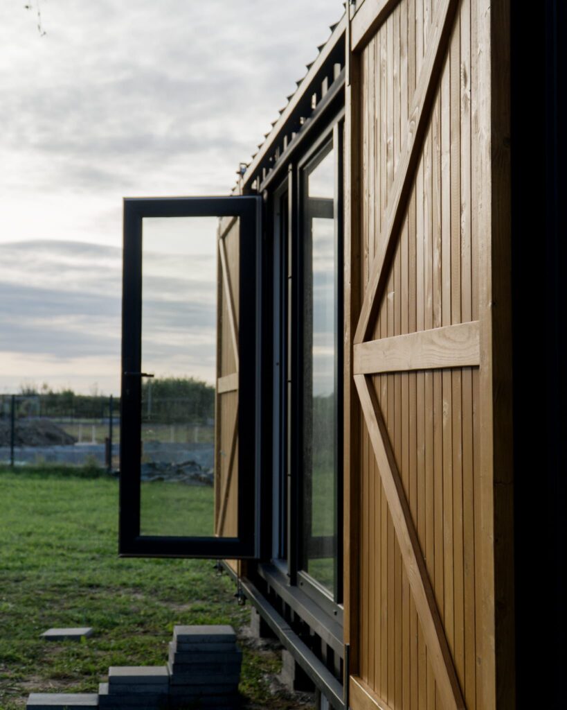 - Fassade – aus Blechpaneelen mit Falz. Pflegeleicht, in verschiedenen Farben erhältlich, ästhetisch und langlebig.