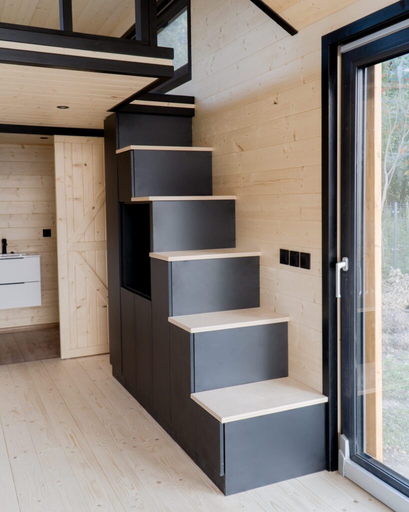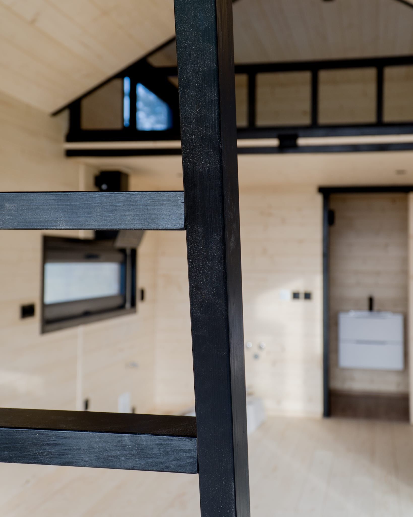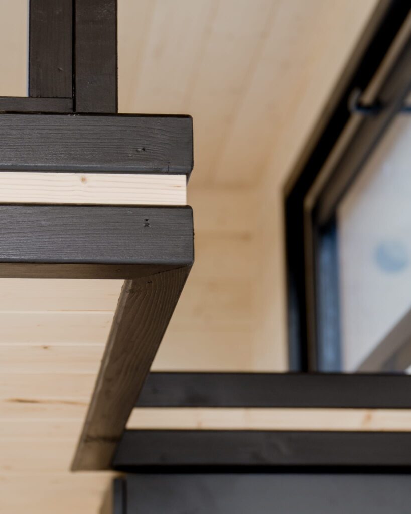 - Innenausstattung aus Naturholz mit schwarzen Einsätzen;