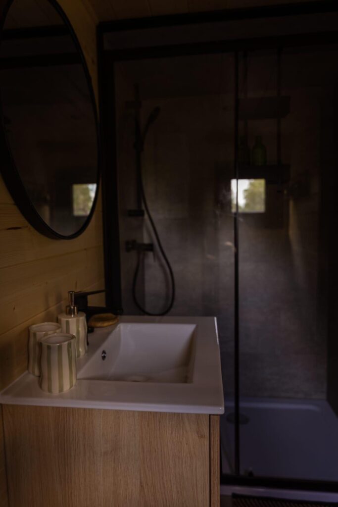 - Badezimmer: Dusche, WC, Waschbecken;